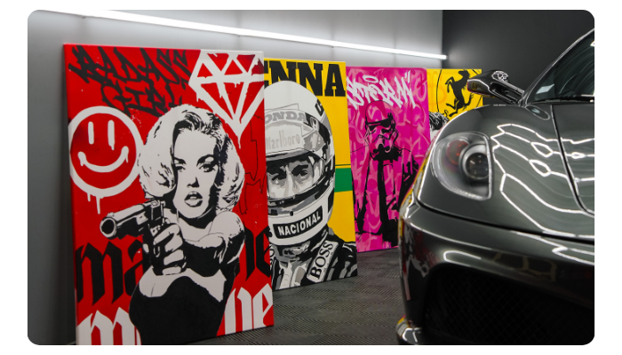 Duo père et fils animés par une passion commune pour le Street Art et le Pop Art. Ensemble, nous créons des tableaux modernes qui mêlent graffiti, peinture acrylique, mettant à l’honneur des figures emblématiques et des touches d’automobile, un clin d'œil à une passion familiale. Chaque œuvre raconte une histoire, pensée pour dynamiser les intérieurs avec caractère et modernité.